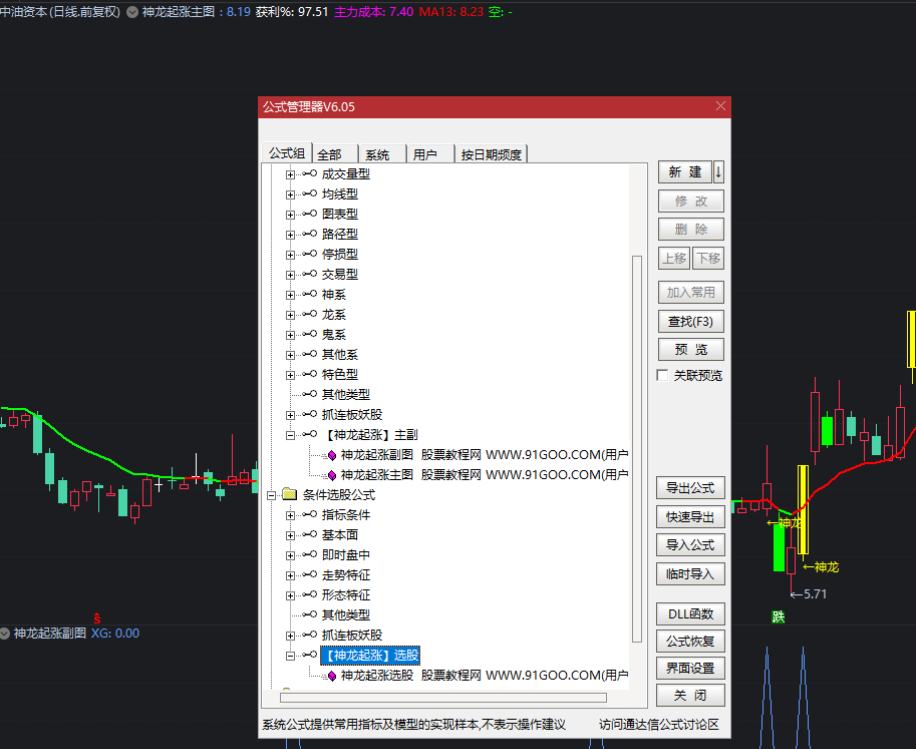 2,打开通达信,按CTRL+F打开公式管理器点击“导入”按钮“,