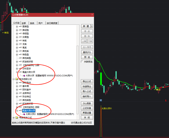 2,打开通达信,按CTRL+F打开公式管理器点击“导入”按钮“,